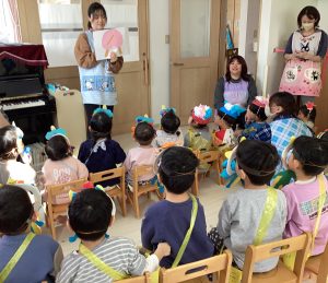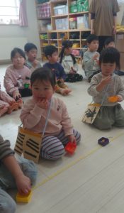 ふたば組さんが鬼と格闘している間にはな組とつぼみ組は『節分クイズ』をして『豆まき』の歌を歌いましたよ🎶