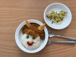 今日の給食は可愛い鬼さんドライカレー👹🍛