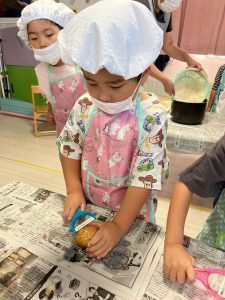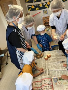 たんぽぽさんは、玉ねぎの皮むきとペットボトルキャップでジャガイモの皮むきをしてくれました。