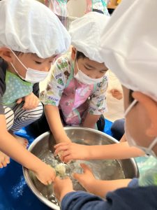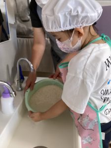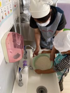 まずは、ひまわりさんがお米とぎ、どうやってやるのかなぁとみんなで考えながら行っていましたよ☺️