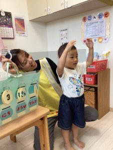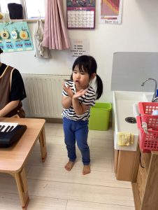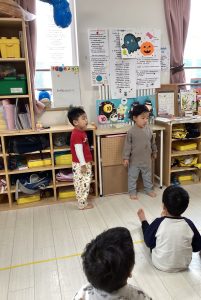 朝の会の後に、そのままみんなの前で手あそびをしたりと前に出て発表する練習もしています❤