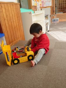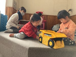 たくさん動いた後は、ゆうぎ室でおままごとや