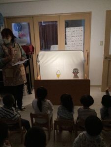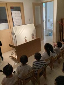 影絵のお友だち『かたろうくん』を連れてきてくれました!かたろうくんがみんなにシルエットクイズを出してくれましたよ😊