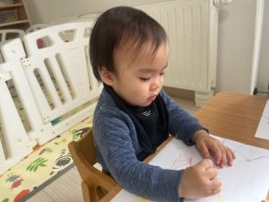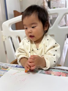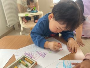 自分で好きな色のクレヨンを選んで集中してお絵描きを楽しんでいますよ✨
