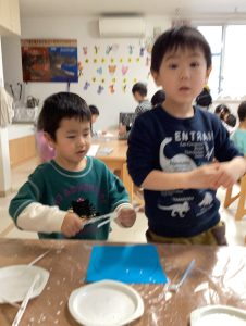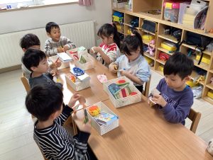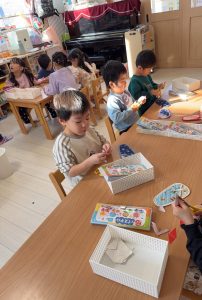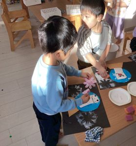 サンタさんみんなサンタさんの仲間作ってくれたんだ!って喜んでプレゼント持ってきてくれるんじゃない?と話すと「やったー!」「たのしみ❤」とワクワクのはな組さんでした🌸
