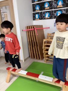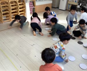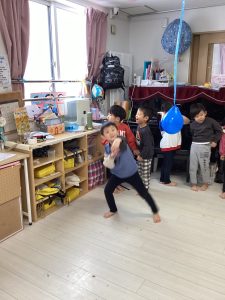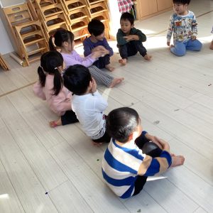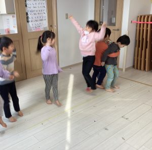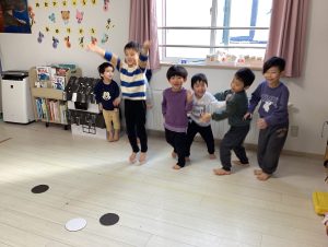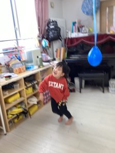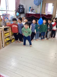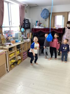 なかなか外遊びが出来ない中でもお部屋で体を動かして遊んでいます。