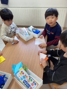 毎月折り紙を取り入れています。各学年少しずつ難しくなっていますが折るのがとっても上手になってきていますよ。