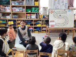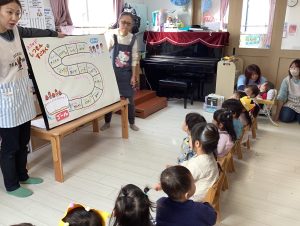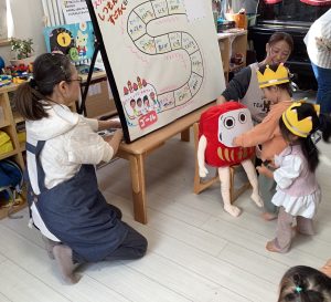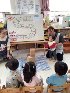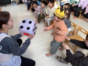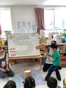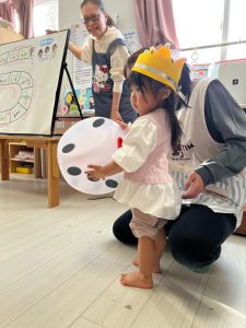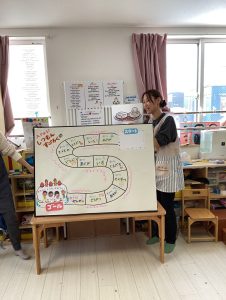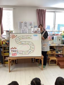 お誕生児にサイコロをころがしてもらい、止まったマスの質問に答えてもらいました😊