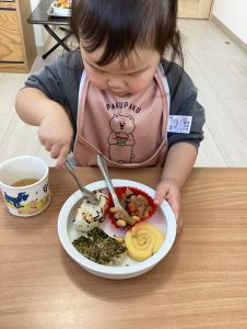 次はくじ引きで選ばれたお友だちが、もちつきごっこ❇