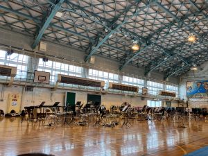 広い体育館にキラキラ光る様々な楽器が用意されていました。早くに到着したので、楽器にも興味津々👀