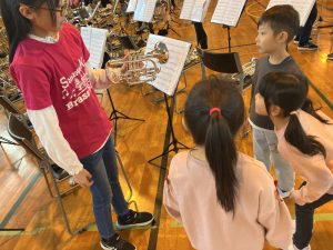 演奏が終わると、ブラスバンドのお姉さん、お兄さんが校内見学の案内もしてくれました‼️保健室に音楽室、一年生の教室も見せてくれました。