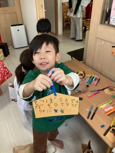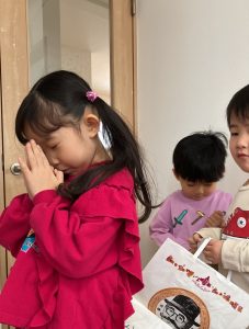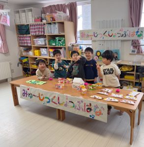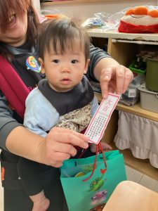 商品の入れ替えをしてから店員さんとお客さんを交代して最後のお店がオープンしました。最後まで掛け声も大きく頑張って売っていました。絵馬を書いたり、お賽銭を投げてお願い事をしたりととても楽しそうなみんなでした(o^―^o)ニコ