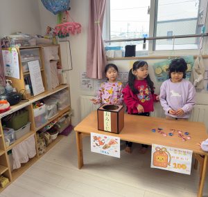 はな組、つぼみ組さんはお金の受け渡しもありました。