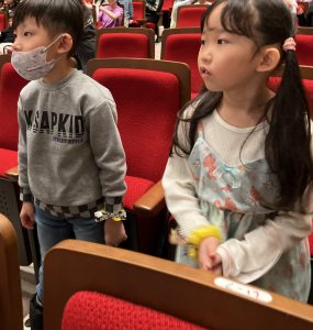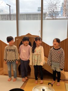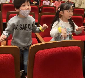 発表会が始まると手遊びから始まったので一緒に手遊びをして楽しみました✋