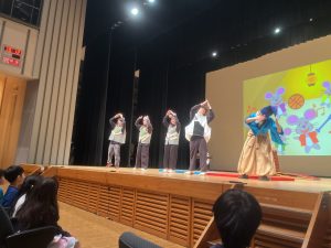 そしてスポーツの学校らしくお兄さんやお姉さんたちが色々な技を見せてくれました。凄い技にみんな目が釘付けに👀