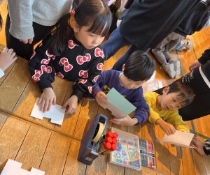まずは、図工のコーナ―。四種類の製作があったのですが、みんなカード作りを選んでいました!!