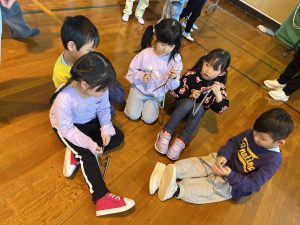今日は、新琴似緑小学校で認定こども園こうほくさんと一緒に交流会に参加してきました‼️体育館で、図工・音楽・体育(二カ所)でコーナー分けされていて、順番に四カ所のコーナーを回ってきました☺️