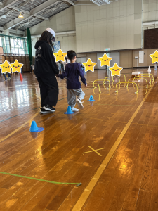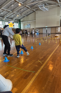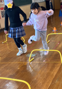 次は、体育『障害物リレー』。小学校のお兄さんやお姉さんと一緒に色々な障害物を乗り越えて体を動かし、楽しみました✨躍動感あふれる写真もたくさん撮れました📷
