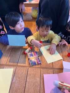 好きな色の用紙と好きなパーツを選んで、それぞれ素敵なカードを作っていたひまわりさんです👏