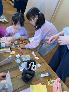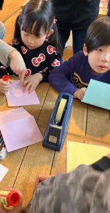 まずは、図工のコーナ―。四種類の製作があったのですが、みんなカード作りを選んでいました!!
