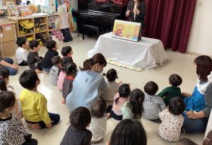 ”おなかのやくそく”という紙芝居をヤクルトさんが読んでくれて、子どもたちは食い入るように集中して楽しみながら見ていました👀✨