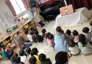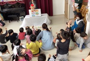 ”おなかのやくそく”という紙芝居をヤクルトさんが読んでくれて、子どもたちは食い入るように集中して楽しみながら見ていました👀✨
