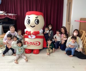 とっても大きなヤクルトマンの登場に「ヤクルトマンだー!」と子どもたちも大喜びでした😊✨