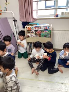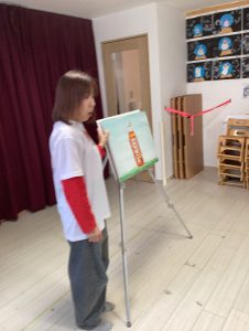 ここからは、はな組さんだけで『レモンのちからでパワーアップ』のお話をボードを使って教えてもらいました‼️牛乳🐄のカルシウムとレモン🍋のクエン酸と一緒に摂ると、身体に栄養が行き届くことを知り、「ウンウン」と大きく頷く子も👍