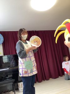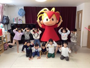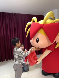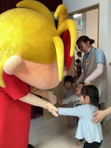 今日は、リボンナポリンのリボンちゃんが来てくれる日でした! 朝から「りぼんちゃんって何?」とドキドキ💓ワクワクの様子で、リボンちゃんの来訪を心待ちにしていたはな組さんを中心に前半は、ふたば組さんとつぼみ組さんも参加しましたよ😊
