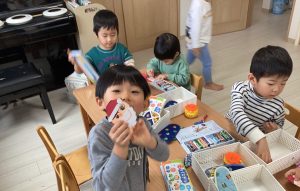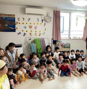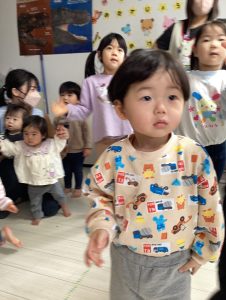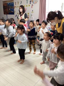 途中でふたば組さん、つぼみ組さんがお部屋に戻りました。戻る時はハイタッチ👐不思議そうに見上げながらも嬉しそうでしたよ😄