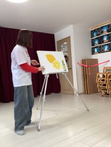 ここからは、はな組さんだけで『レモンのちからでパワーアップ』のお話をボードを使って教えてもらいました‼️牛乳🐄のカルシウムとレモン🍋のクエン酸と一緒に摂ると、身体に栄養が行き届くことを知り、「ウンウン」と大きく頷く子も👍