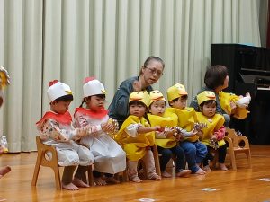 最後は、ぽんこちゃん役の実習生の先生が登場。「おともだちが欲しい…」とのお願いごとに頭を悩ませながら、ぽんたがお友だちになってくれるというお話にみんな聞きいっていたのでした😄