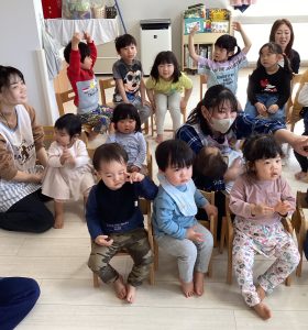 お友だちの年齢を園長先生が言うと「おんなじ!」と言って嬉しそうにするお友だちもいました♡